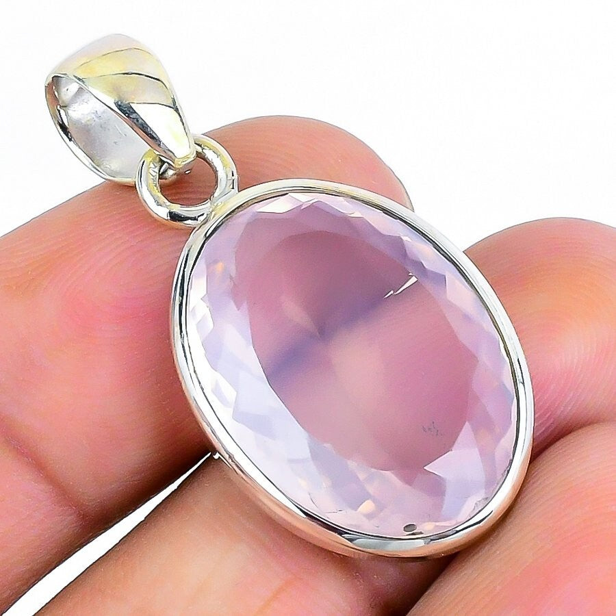 Rose Quartz Gemstone Solid Silver Anniversary Birthday Boho New Pendant Jewelry