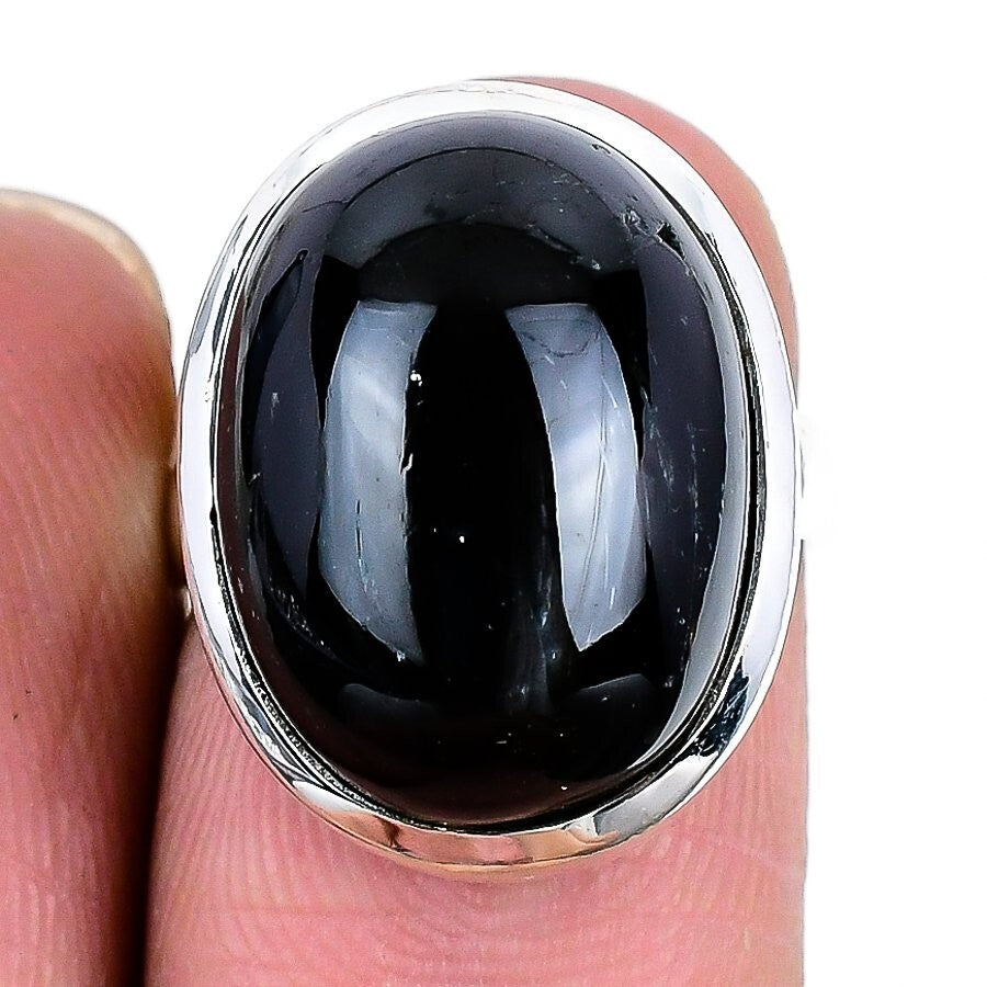 Black Star Stone Solid Sterling Silver Bezel Statement Wife Ring Jewelry US 6