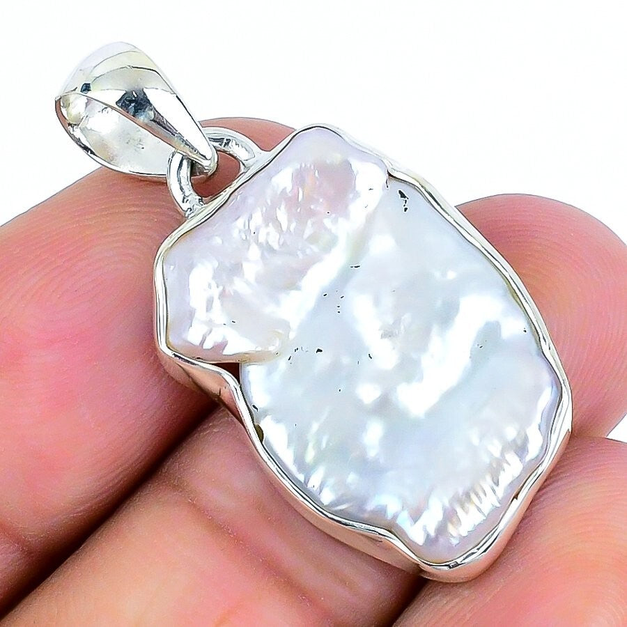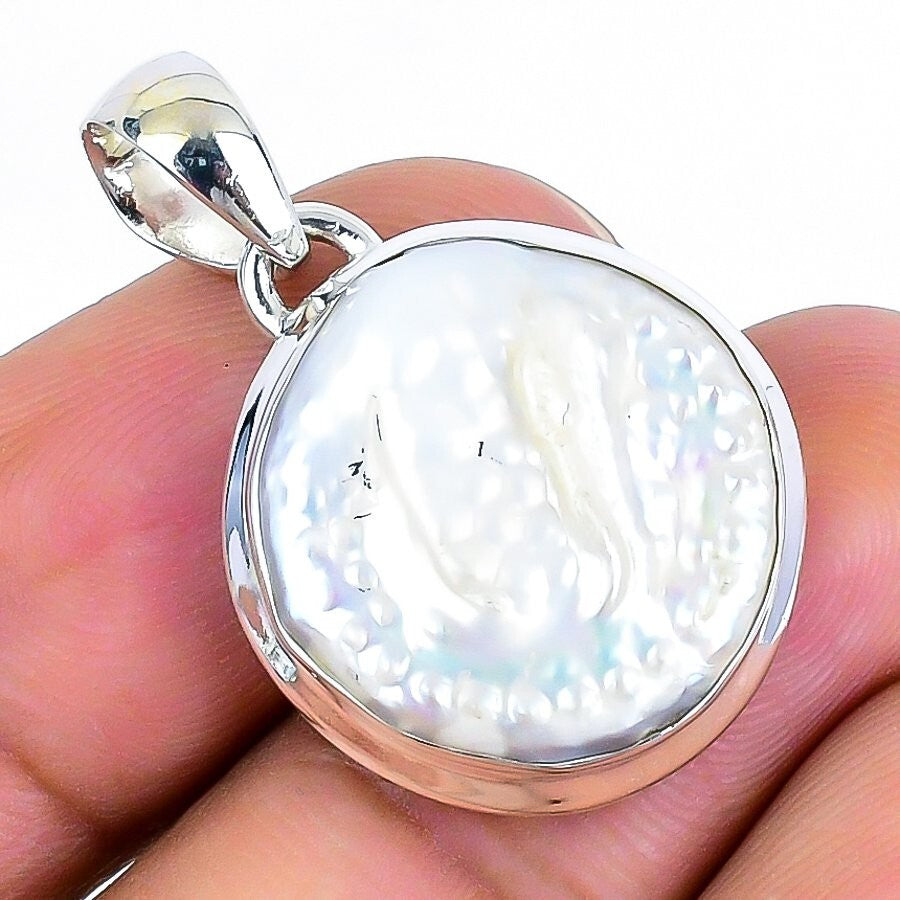 Blister Pearl Stone 925 Solid Silver Art Deco Daughter Unique Pendant Jewelry