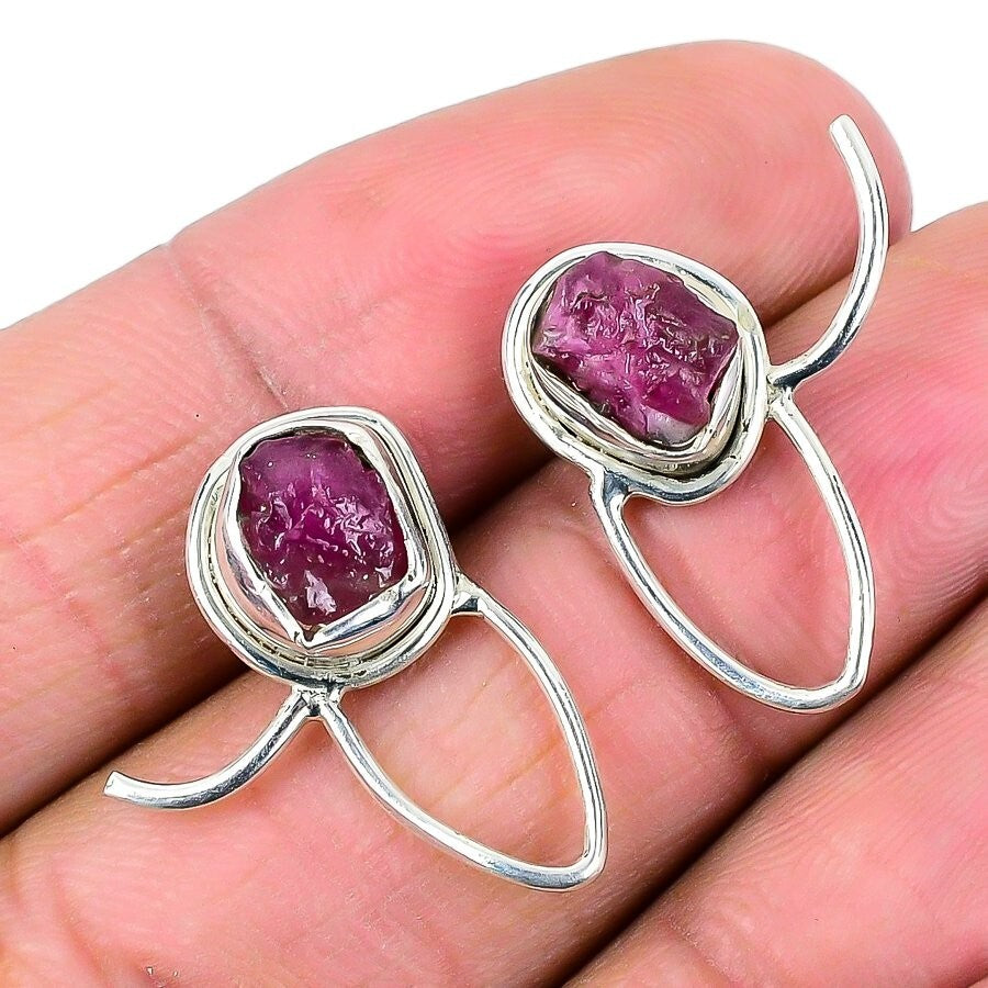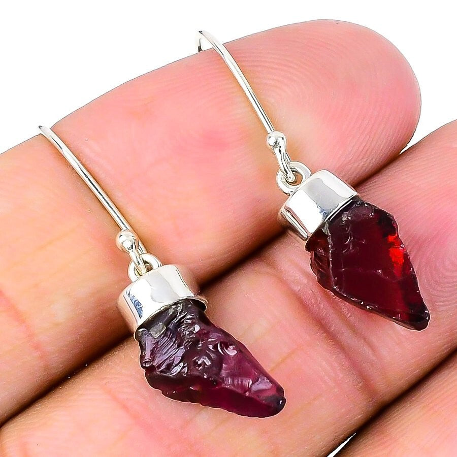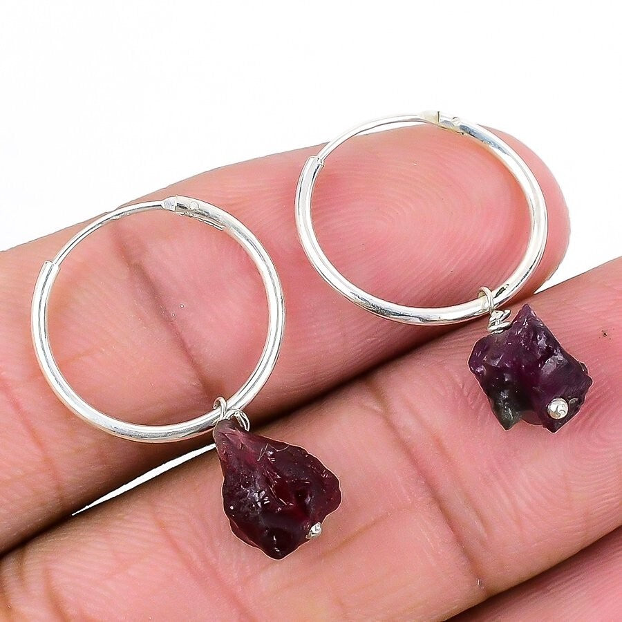 Garnet Rough Stone Solid Sterling Silver Dangle Hook Daughter Birthday Earrings