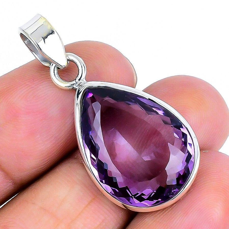 Natural Amethyst Sterling Silver Channel Set Wife Unique Ethnic Pendant Jewelry
