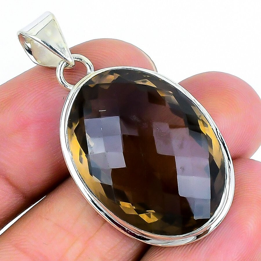 Smoky Topaz Gemstone Sterling Silver Mother Boho Handmade Handcrafted Pendant