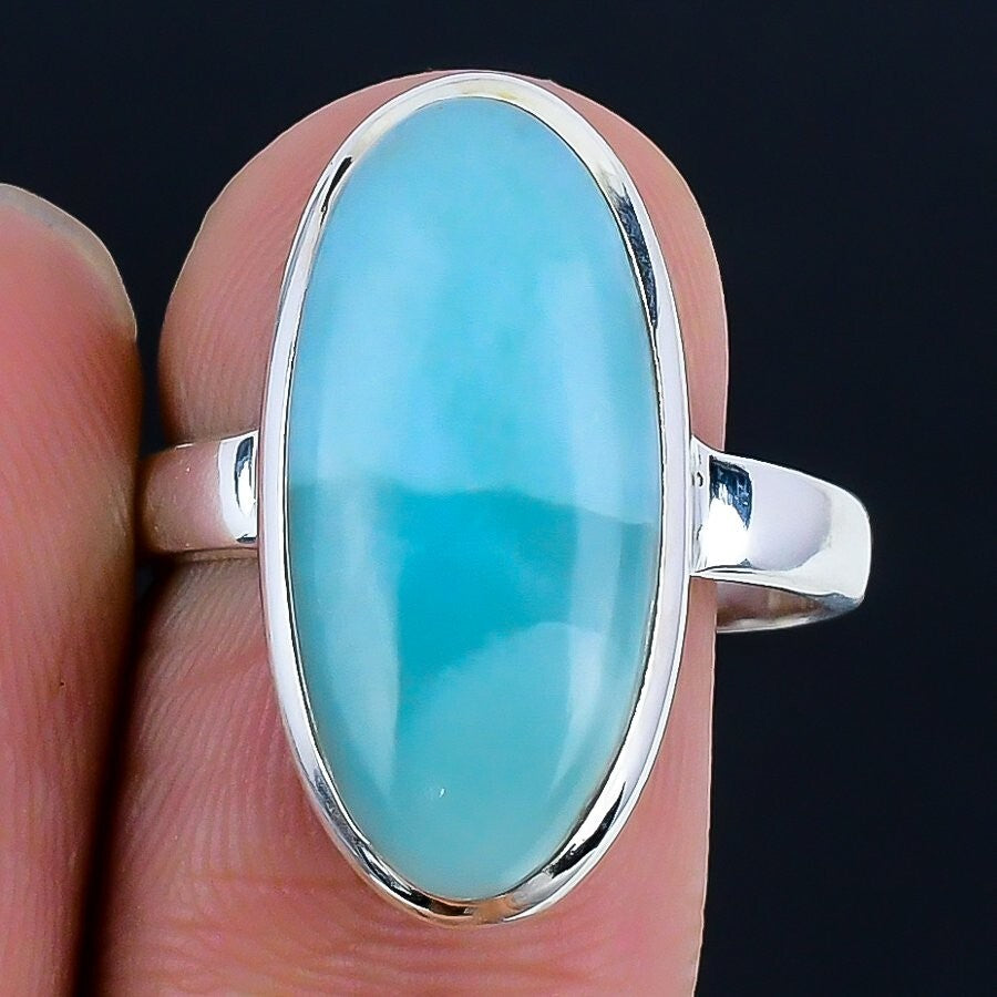 Natural Republic Larimar Sister New Statement Ring Solid Sterling Silver US 9