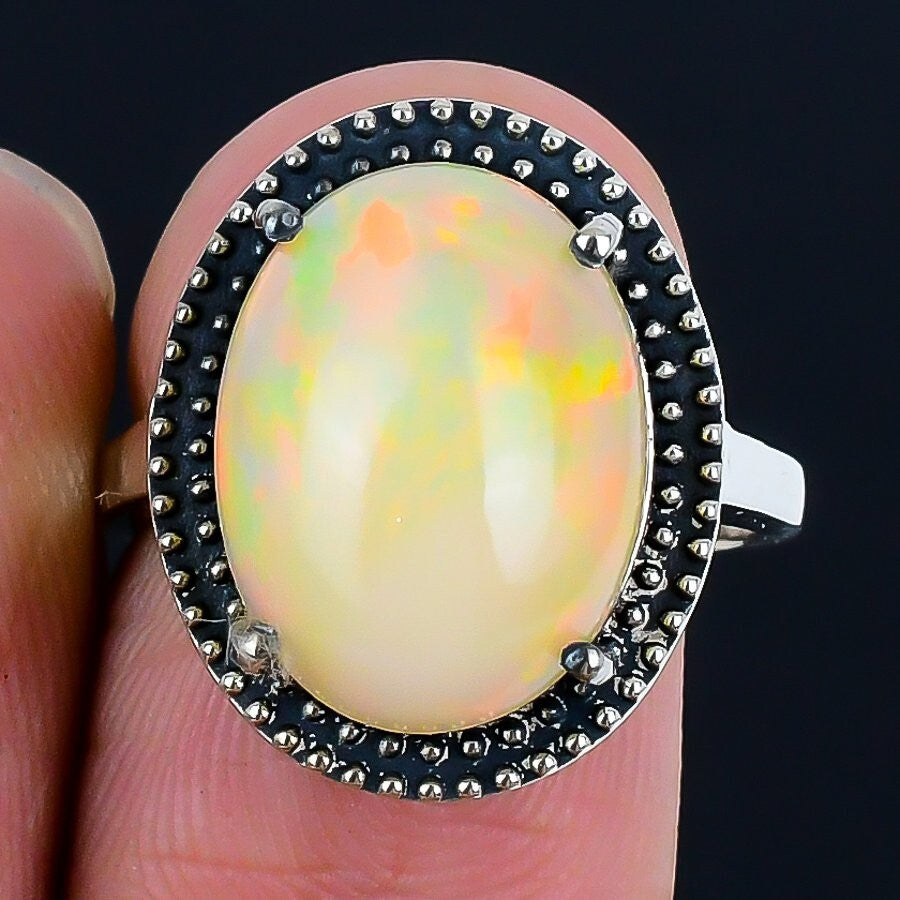 Natural Ethiopian Opal Solid Sterling Silver Daughter Boho Statement Ring US 7.5