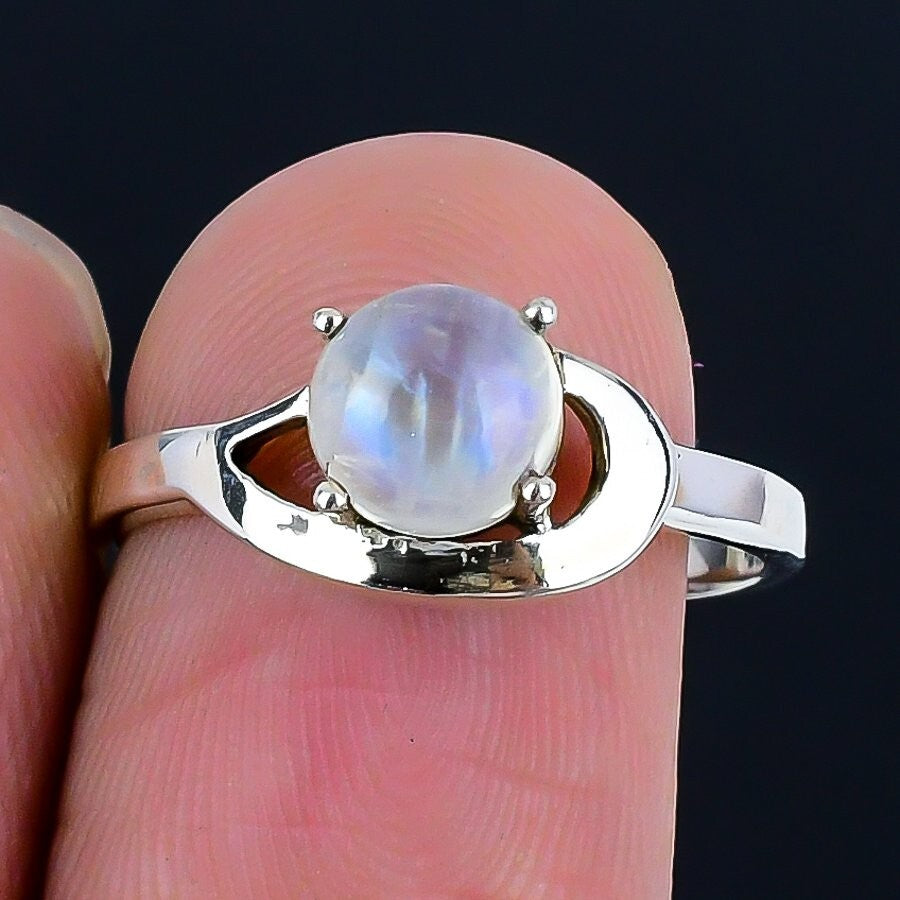 Moonstone Gemstone Solid Sterling Silver Anniversary Statement Unique Ring US 8