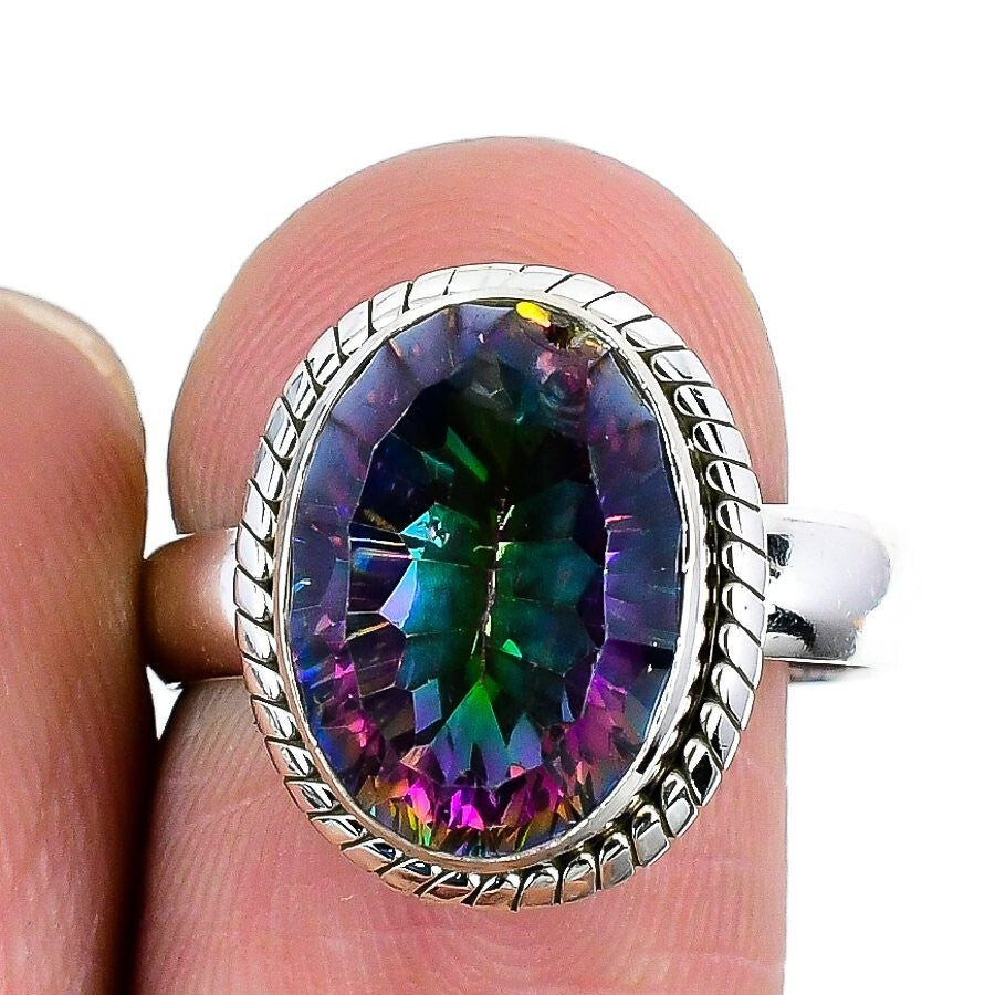 Mystic Topaz Gemstone Wedding Statement New Ring Jewelry Size 8 925 Solid Silver