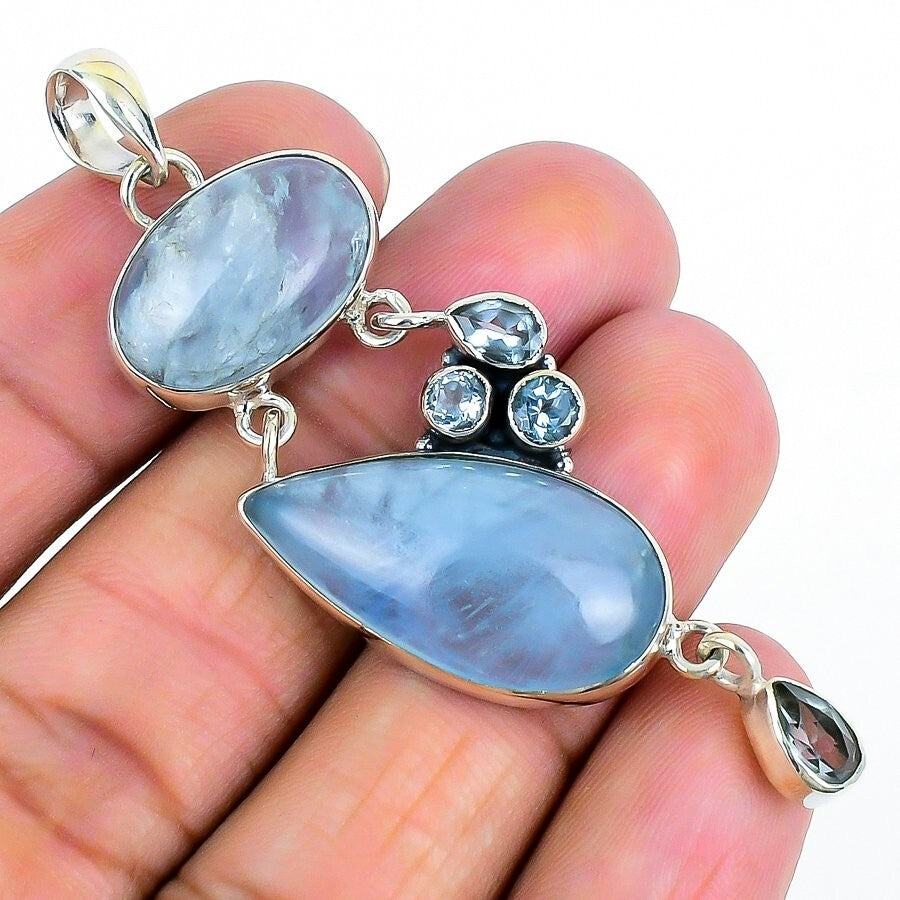 March Aquamarine Gemstone 925 Silver Anniversary Birthday Wife Wedding Pendant