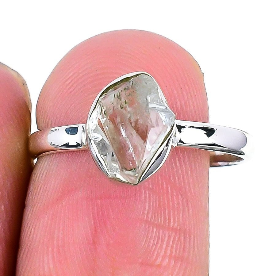 Natural Herkimer Daimond 925 Sterling Silver Cluster Wife Ring Jewelry Size 7.5