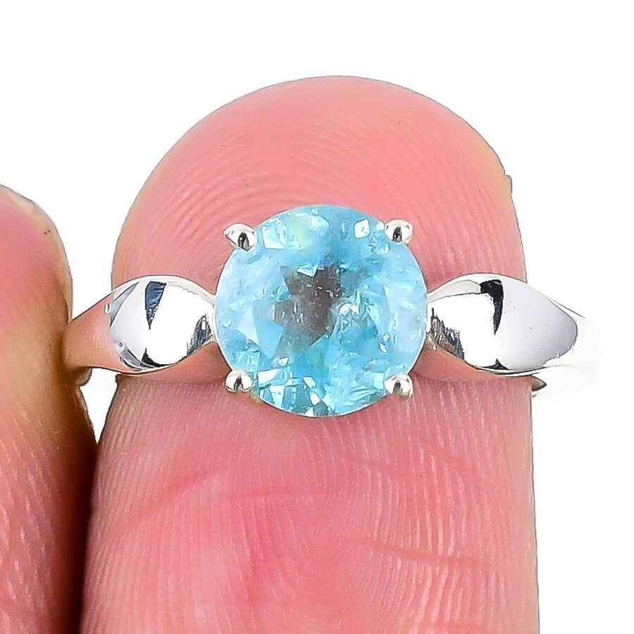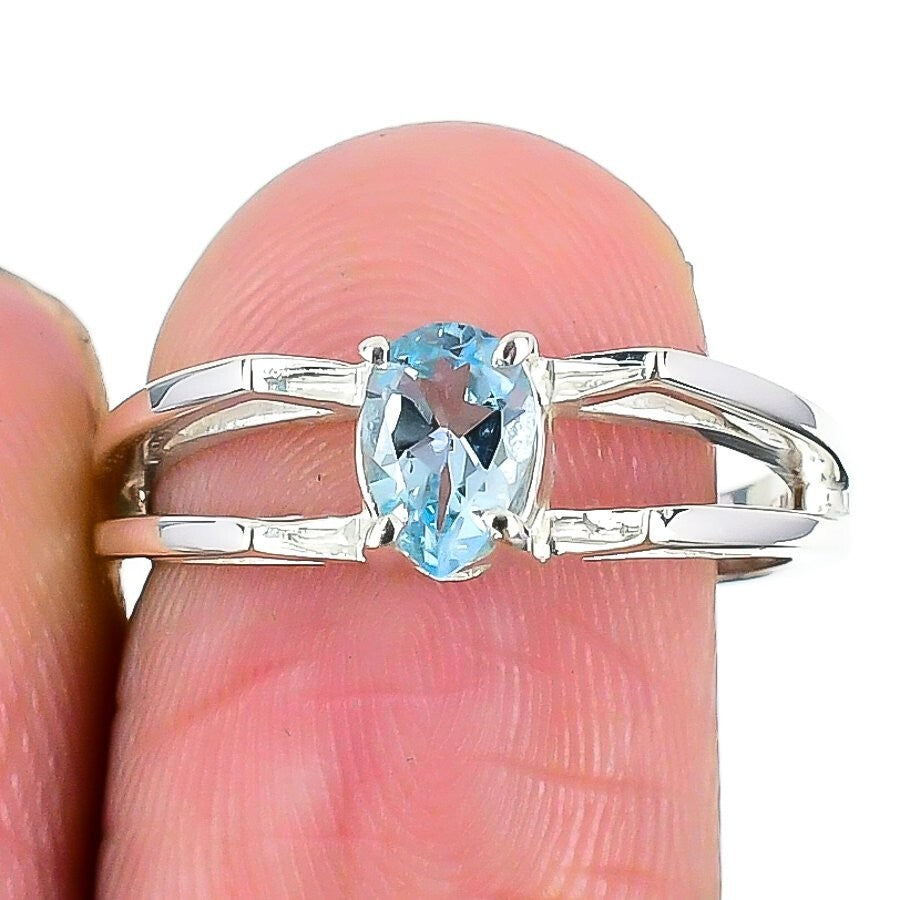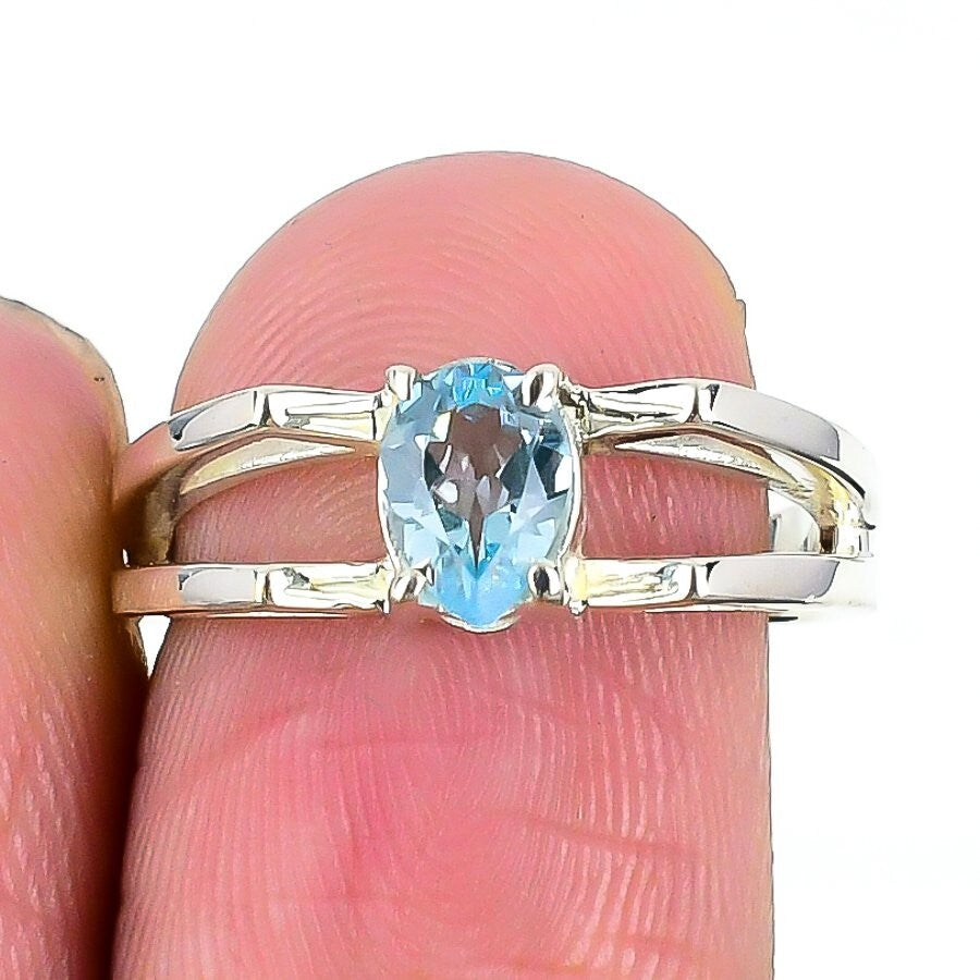 Natural Swiss Blue Topaz Solid Silver Sister Cluster Handmade Trendy Ring Size 6