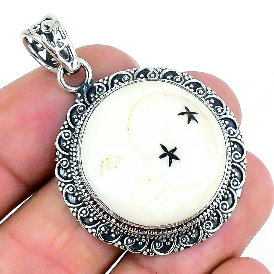 Natural Boneface Sterling Silver Channel Set Anniversary Engagement Wife Pendant