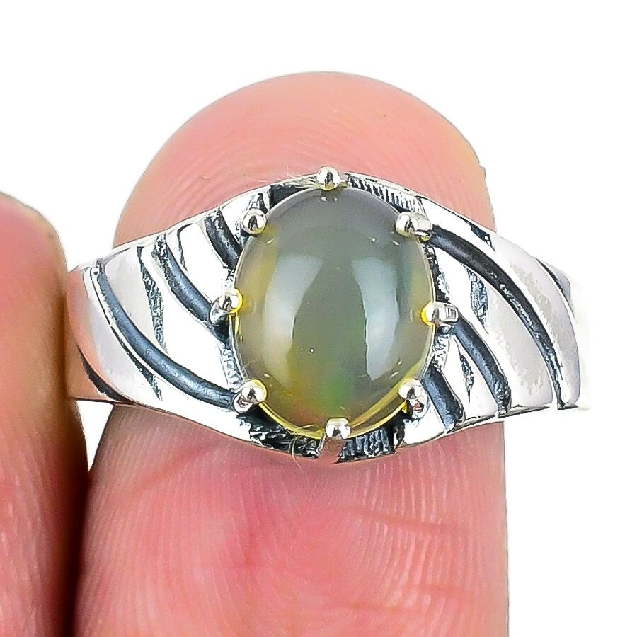 Natural Ethiopian Opal Solid Sterling Silver Cluster Handcrafted New Ring Size 7