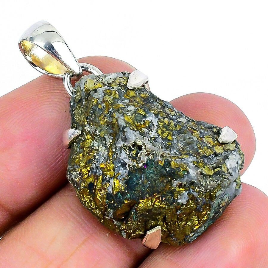 Rainbow Pyrite Druzy Gemstone Anniversary Boho Pendant Jewelry 925Ā SolidĀ Silver