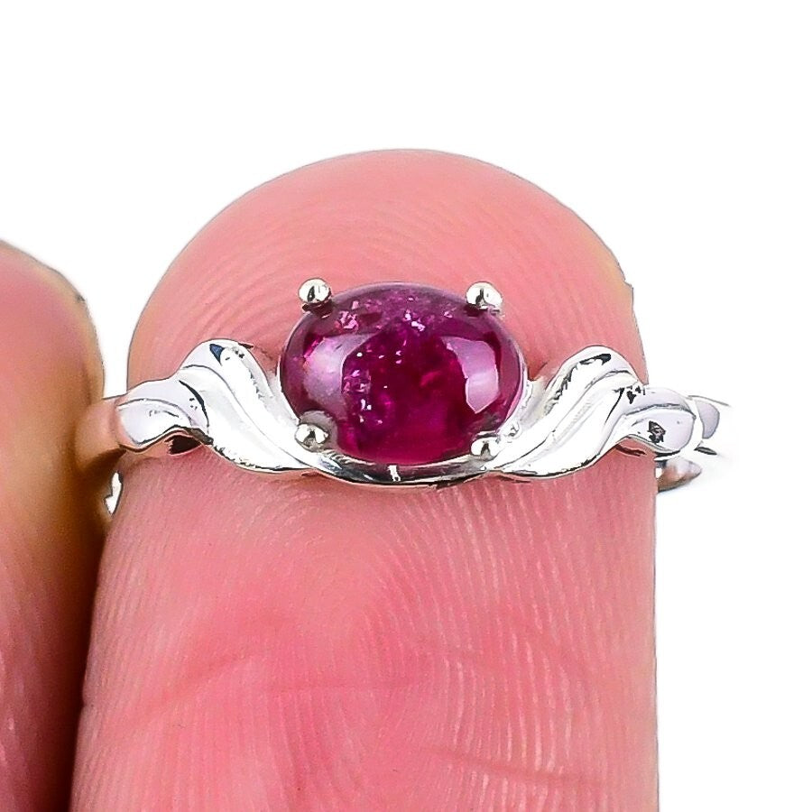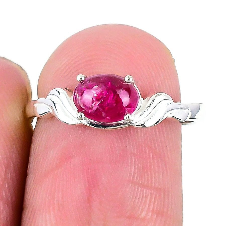 Pink Tourmaline Stone 925 Sterling Silver Cluster Anniversary Wife Ring Size 7