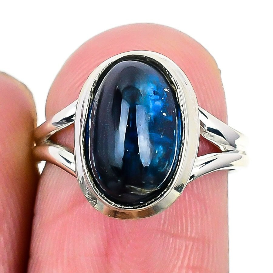Throat Chakra Blue Kyanite Stone 925Ā SolidĀ Silver Handmade Cluster Ring Size 5.5