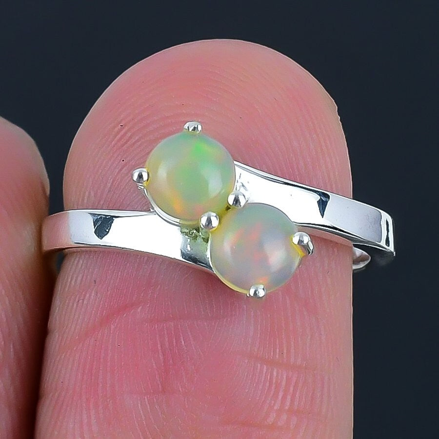 Natural Ethiopian Opal Sterling Silver Memorial Day Cluster Ring Jewelry Size 7